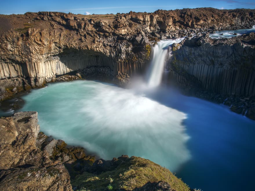 From atop its 198 metres, this is Iceland’s talest waterfall. The narrow gorge it falls into makes it an unforgettable sight.