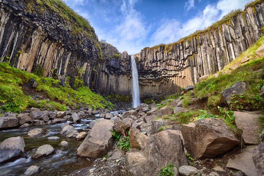 The striking contrast between its white waters and its dark basaltic rock formations make this an obvious pick.